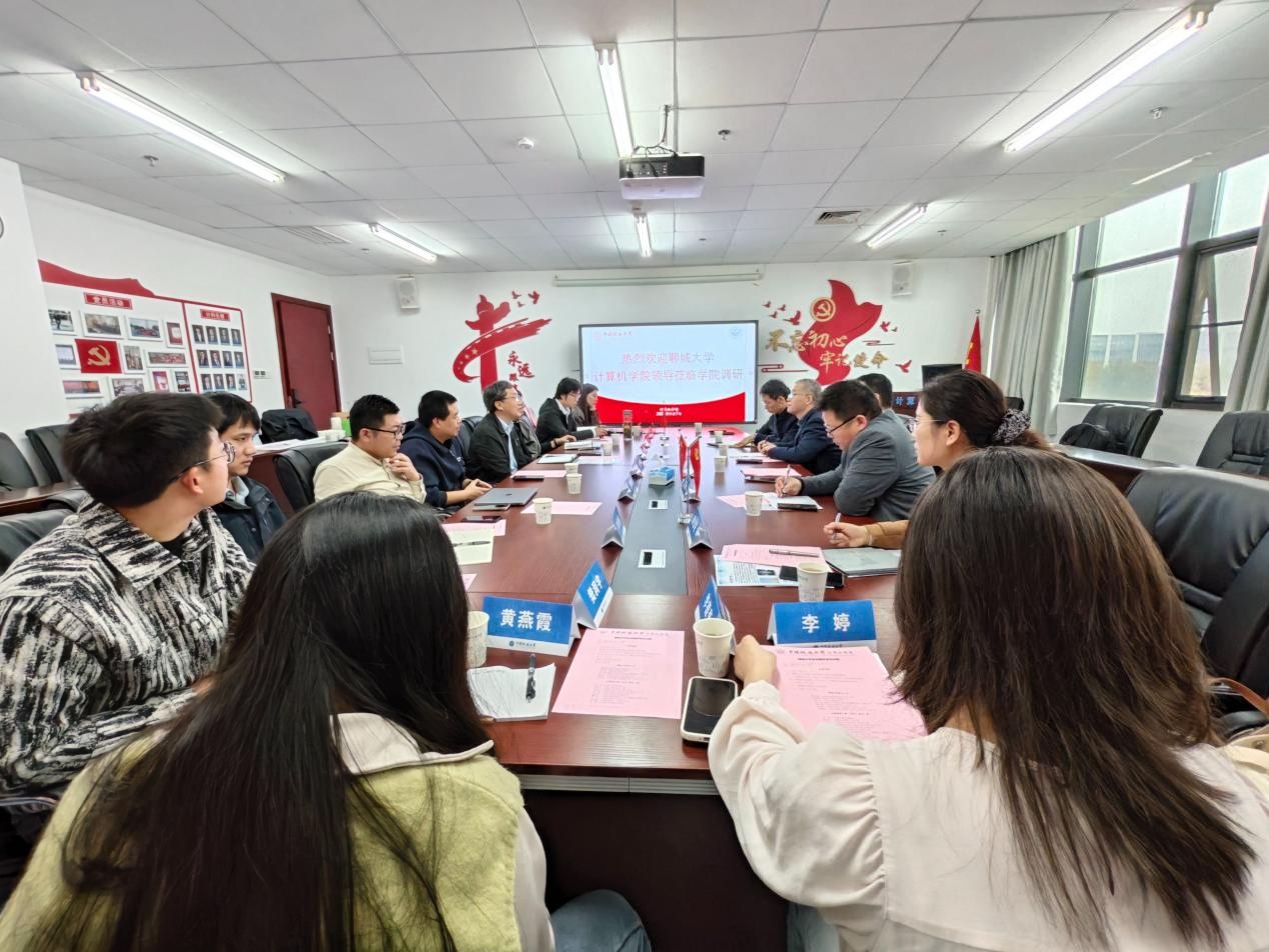 11月7日上午,聊城大学黄色直播 党委副书记兼院长贾仰理、教务处副处长张绪涛、黄色直播 副院长李成友、教务处教学质量管理中心副主任耿庆军、黄色直播 软件工程系主任韩玉艳、专业教学实验中心主任凌海云、工程教育专业认证办公室主任李德奎一行7人来黄色直播 交流访问。学院副院长刘刚、各系室主任、教师代表参会。刘刚副院长主持交流会。