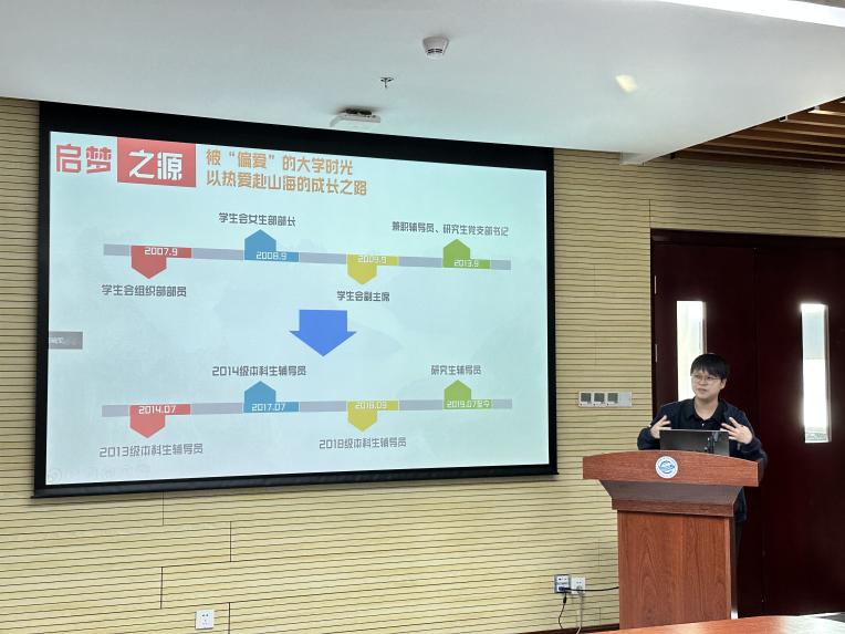 李欢欢以“青春梦想合伙人——辅导员工作实践与体会”为主题,从启梦之源、筑梦之旅、伴梦之行、逐梦之思四个方面向做汇报和交流。她认为,是学生时代地大、黄色直播 的无私培养、关怀和温暖,坚定自己留校做辅导员的信念;是优良的学院教风学风和学工传统,使自己在学生思政教育与专业教育融合、专业技能与社会服务能力融合、专业理论学习与双创实践融合、教育管理与学生综合发展方面进行了积极探索,并收获成长与荣誉,成为学院这么多年来一代代优秀学生工作者薪火相传中的一把火、一束光。她表示,高校老师作为学生的“青春梦想合伙人”,在帮助学生追梦和圆梦的过程中,也在实现自己的人生梦想和人生价值。