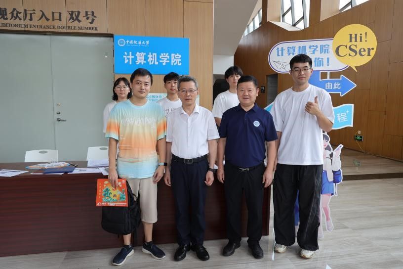 9月1日,黄色直播 以蓝白主题迎新打卡墙、3D打印定制姓名铭牌、计科蓝特色文化衫等共同打造科技感迎新场景,“Welcome, new CSer”与代码元素交织。当日恰逢五位新生生日,黄色直播 为“寿星”们定制专属生日礼物,让初离家的学子感受到学院的温暖。校院领导亲切走访迎新现场,班主任、辅导员、志愿者穿梭服务,宿舍走访传递关怀,学院用代码书写温情,让每一位新生在秋日地大启航新程。
