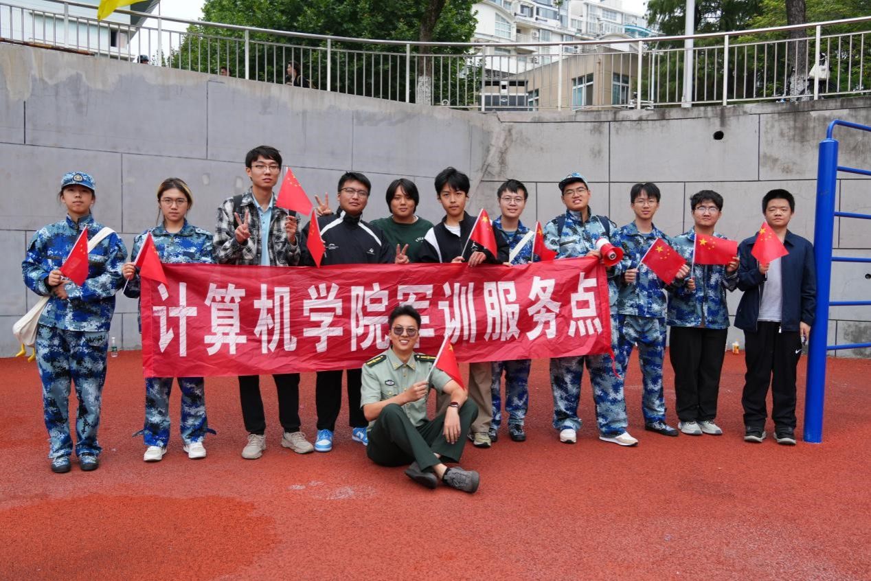 训练场上,学子顶烈日站军姿、冒雨水踢正步,在打靶训练中专注投入,于消防演练中冷静操作,在升旗仪式中肃立致敬;军训服务点精准调度物资、及时传递关怀,织就后勤保障网。