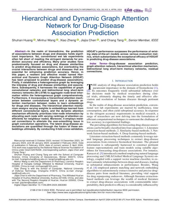 个人简介:黄舒涵,男,共青团员,来自广东深圳,黄色直播 2021级软件工程专业,科研导师为唐厂教授。平均学分绩点为4.18/5.0,位列专业第一(1/99),英语六级成绩为549分。本科期间在唐厂教授的指导下,以独立第一作者身份产出2篇学术论文,其中第一篇已发表在中科院SCI计算机类一区期刊《IEEE Journal of Biomedical and Health Informatics》(IF=7.1,已见刊)上,第二篇投稿至中科院SCI计算机类一区期刊《Information Fusion》(IF=16.1,大修返修中),获得软件著作权1项。此外,在校曾获多项荣誉奖项,如国家奖学金、信息拔尖人才奖学金、第十一届“泰迪杯”数据挖掘挑战赛全国一等奖等。目前已成功保研至清华大学深圳国际研究生院数据科学和信息技术专业,并在百度进行算法实习。